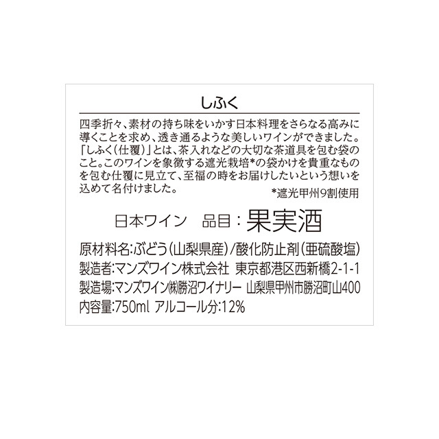 仕覆(しふく)という漢字であらわされるこのワイン。
