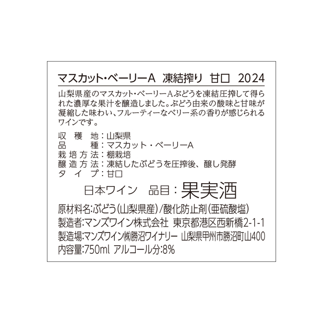 品種 マスカット・ベーリーA ぶどう産地 山梨県 ヴィンテージ 2024 内容量 750ml アルコール分 8% タイプ ロゼ 味わい 甘口 酸味 ほどよい 飲み頃温度 6-8℃