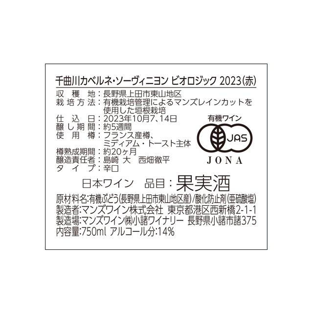 上田市東山地区の自社・有機栽培管理畑のカベルネ・ソーヴィニヨンを使用しています。
