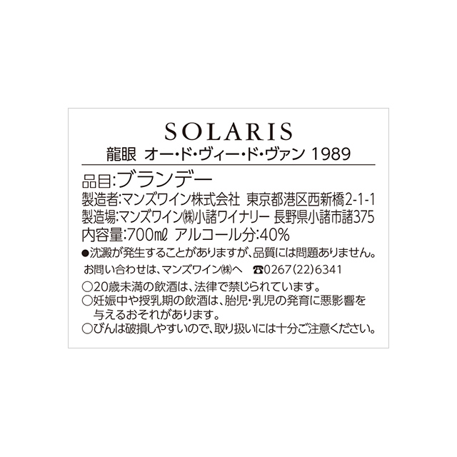 品種 龍眼 ぶどう産地 長野県 ヴィンテージ 1989 内容量 700ml アルコール分 40% タイプ ブランデー