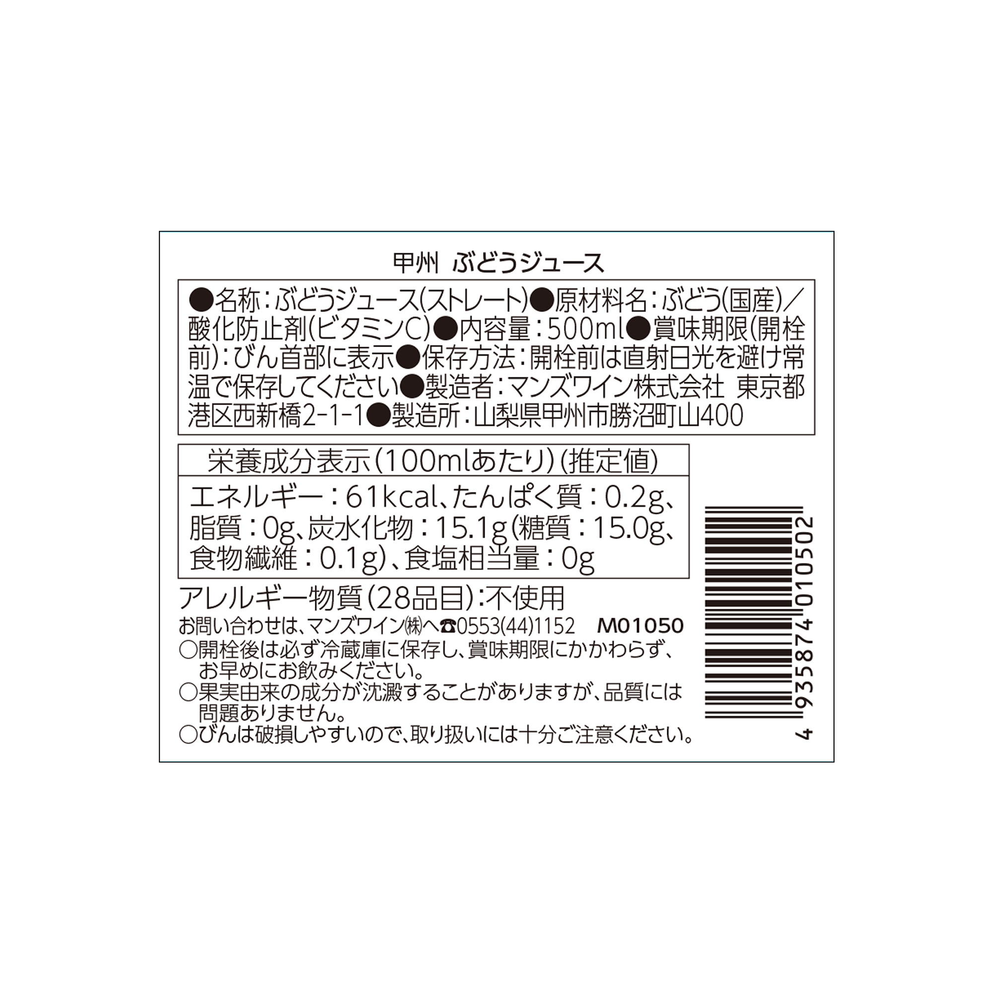 その起源は1,000年の昔に遡るとも伝わる、甲州を搾って作った100%ストレートジュースです。日本固有の白ワイン用ぶどうのフレッシュな香りと、さわやかな酸味を余すことなくお楽しみいただけます。