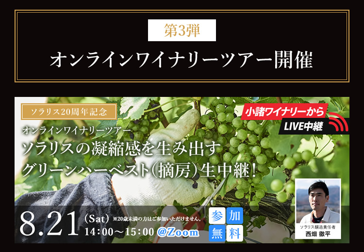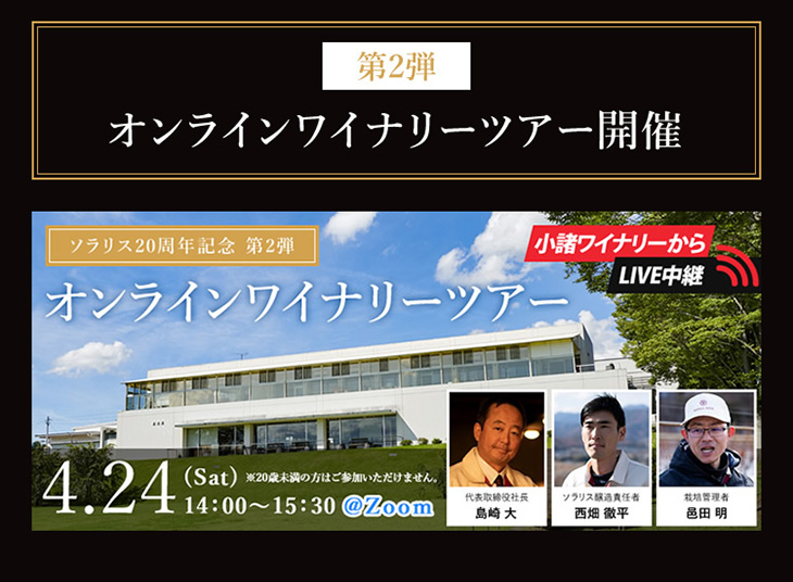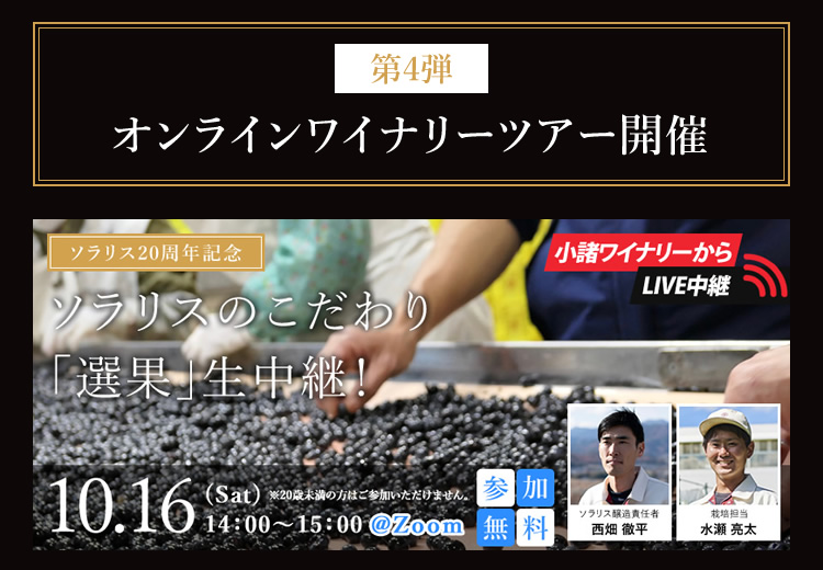 ソラリスの生まれた土地である小諸ワイナリーからオンラインワイナリーツアー第4弾を開催いたします!