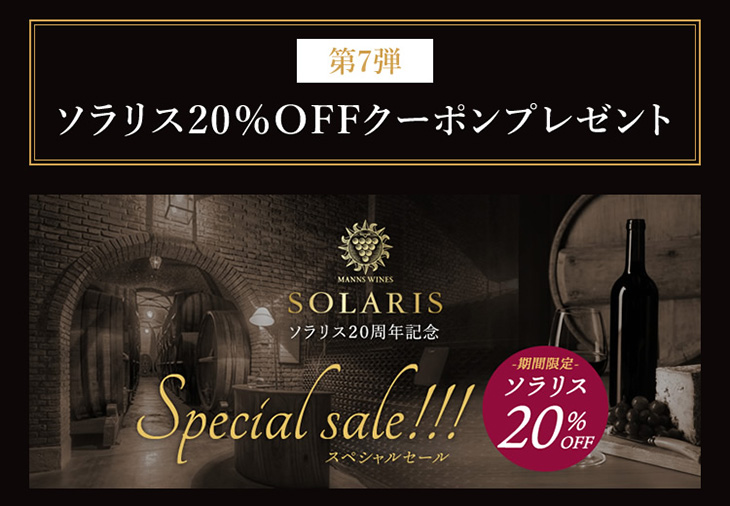 ソラリス20周年を記念し、ソラリスシリーズ(一部商品を除く)にお使いいただける20%OFFクーポンをプレゼントいたします!