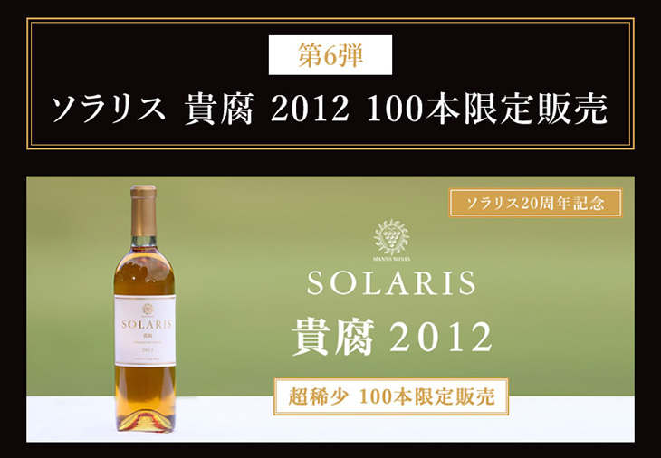ソラリスの貴腐ワインの3rd vintage「ソラリス 貴腐 2012」をソラリス誕生20周年を機に限定発売させていただきます。